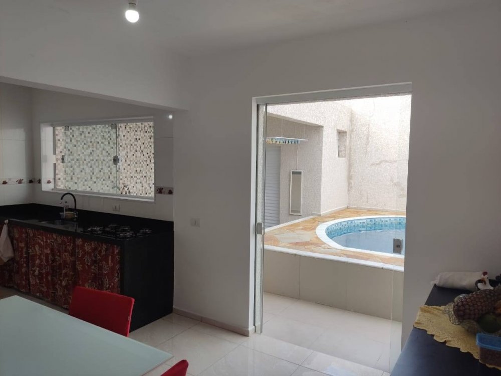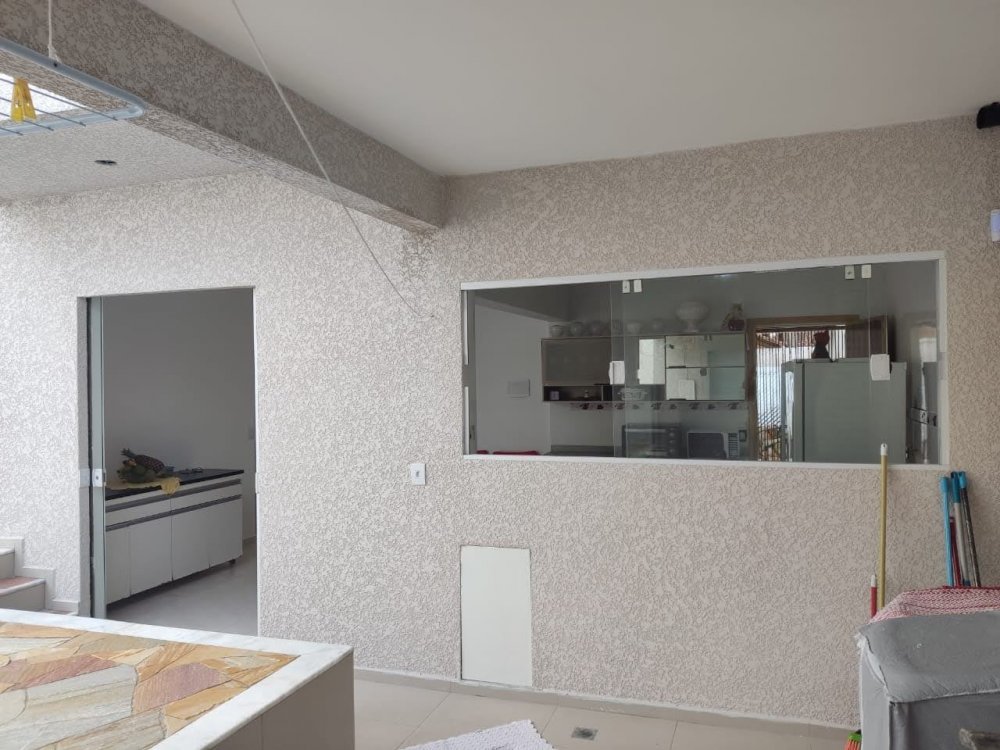 Com três dormitórios, sala , cozinha, banheiro social, garagem para três carros e lavanderia.