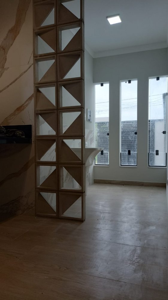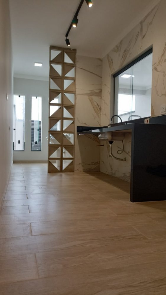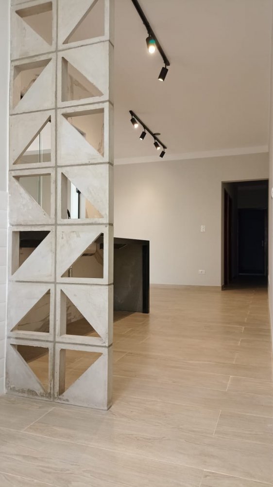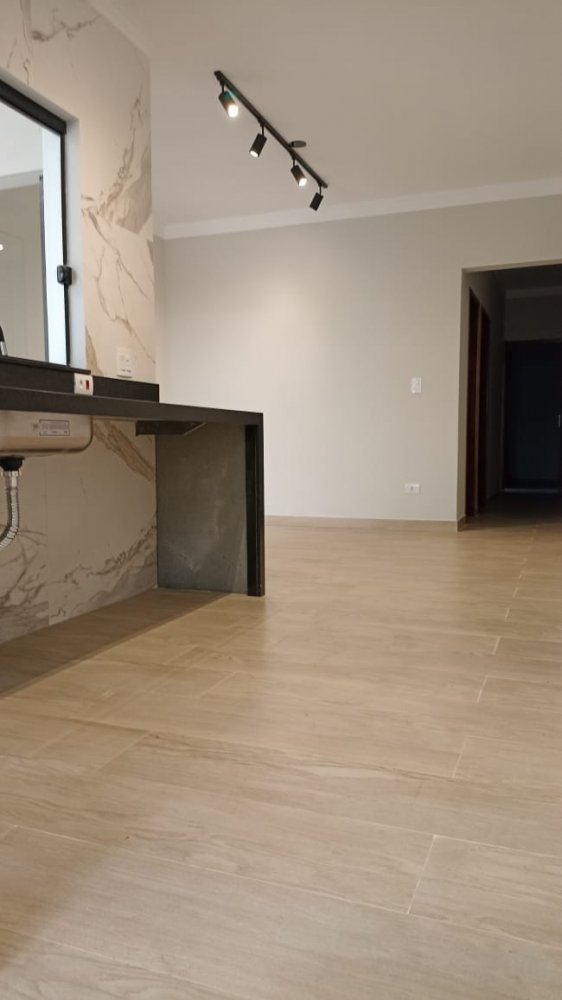 Com dois dormitórios sendo uma suíte, sala , cozinha, um banheiro social, garagem para 2 carros e lavanderia.